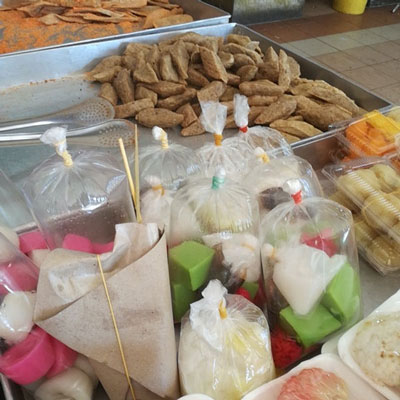 モスクの周辺には露店も立ち並び、スナック菓子感覚で手軽に食べることのできるピサン・ゴレン(揚げバナナ)、クロポ・レコー(魚のすり身を棒状にして揚げたもの)や、クエと呼ばれるマレーシアの伝統的なお菓子などを購入することができる。礼拝後には、このような揚げ物やクエを購入し帰宅後家族で食べる場合もあれば、近所を訪問する手土産とする場合もある。食事を通じて人々が繋がる空間が自然と出来上がっている。