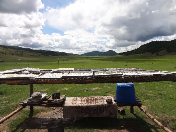 食料としては、「赤い食べもの」と総称される肉類と「白い食べもの」と総称される乳製品類がある。肉類およびその加工品は、牧民の栄養補給と満足感に必須の食品であり、長期的な計画のもとで、屠殺・加工・保存・消費している(風戸 2020)。また、家畜の頭数を減らすことなく日常的に摂取できる乳製品も重要である。搾乳は一年中行われているわけではない。乳は、母畜が妊娠・出産してはじめて分泌される。搾乳期間は、初夏から秋・冬にかけてというのが一般的である。夏は豊富な乳量を背景に、多様な乳製品があふれる。一方、冬には、越冬食料として準備したばかりの肉がある。乳製品は保存食として残しておいたものを少しずつ食べる。肉と乳製品はともに季節性の強い食品であり、これらを季節的に食べ分けることで、効率的な食料の確保が可能になっている。ただし、モンゴルの牧民は決して自給自足的な食生活を送っているわけではない。中国との交易により、穀類や茶などが古くから食生活に組み込まれてきた(尾崎 2017)。