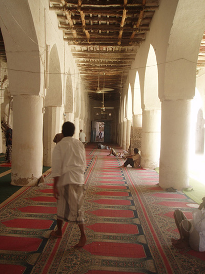ザビードは、アシャーイル・モスクあたりを中心として発展していった。これは、ザビード周辺にイスラームを伝えたことで知られるアシュアリー(692年没)に由来するもので、9世紀に、さらに西側に位置する大モスクとともにズィヤード朝によって建設された。アラビア半島で最古とも言われるマドラサが併設され、南アラビアにおける学問の中心地となった。もっとも9世紀の状態をそのまま保っているわけではなく、ほかの建造物と同様に長い歴史のなかで幾度もの増改築や修復がくり返されてきており、現在の外観となったのは15世紀のことと言われる。モスクのなかは涼しく、蒸し暑さから逃れるためか、幾人ものおじさんが寝転んでいた。なおザビードでは、私自身は見かけることはなかったものの、シャーフィイー派法学を学ぶために東南アジアからやって来た留学生が現代でも学習を続けているという。