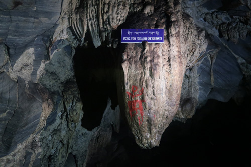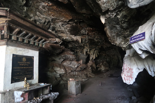 洞窟内には、グル・パドマサンババの足跡や馬の鞍、グル・パドマサンババとイシェ・ツォゲルそれぞれが瞑想した空間、観音菩薩の玉座、金剛杵、悪魔の肋骨と心臓、悪行を告白するための聖なる岩をはじめとした数多くの聖跡があり、奥に進むにつれ狭く険しくなっていく。第1の入口、第2の入口……と続いていくが、最後の第6の入口は非常に狭く、巡礼に訪れたブータン人でもほとんどの人は入るのを躊躇うという。