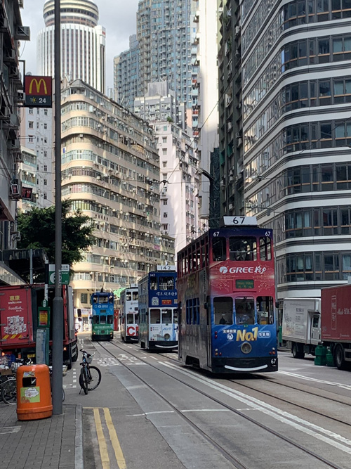 香港島北岸地域では、金融都市香港の心臓部であるセントラル(中環)や商業地のコーズウェイベイ(銅鑼湾)といった、香港の顔というべき街並みが東西に広がり、高層ビルの谷間を香港名物の二階建て路面電車(トラム)*写真1が走る。繁華街の隣には、上環(ションワン)、湾仔(ワンチャイ)、北角(ノースポイント)、西湾河(サイワンホー)のような下町があって、新旧の入り混じる香港らしさを堪能させてくれる。街から南へと、ケーブルカー(ピークトラム)で急峻なヴィクトリア・ピーク(山頂)*写真2を登れば、名物の夜景が待っている。