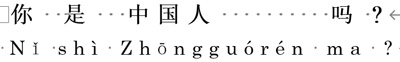 「Nǐ shì Zhōngguórén ma?」を英語で書くと、「Are you Chinese?」である。文の最初は大文字から始まり、固有名詞も大文字から始まる。ゆえにピンイン表記は欧米の言語の習慣を真似ているとわかるのである。