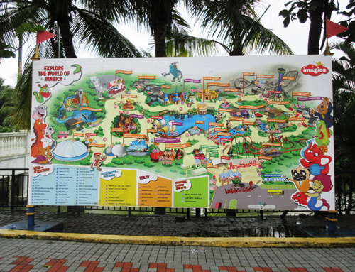 イマジカは、インド最大の商業都市ムンバイーと学園都市プネーの中間に位置する高原の避暑地に建設された「インド初の国際基準のテーマパーク」「インド初のディズニー式のテーマパーク」である。オープン当初は6つのテーマに基づくエリアから成るテーマパークであり、各エリアの建物の外観やレストランのメニュー、アトラクションの種類や内容、ギフトショップなどは、まさしくディズニー式にステレオタイプ化されたエリア・イメージに基づいて統一されていた(写真3)。