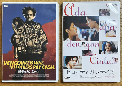 日本でDVD販売されたインドネシア映画『ビューティフルデイズ』(2002年、右)と『復讐は私にまかせて』(2021年、左)。最終閲覧日:2025年8月10日
