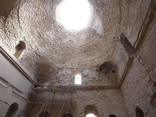 13世紀前半のモンゴルの侵入による建築の変化は、1250年頃から生じる。イル・ハン朝では本拠地とした北西イランにその遺構は多く、サーサーン朝宮殿を転用したタフティ・スレイマン、スルターン・オルジャイトゥーを葬ったスルタニエ(図11)、タブリーズの巨大なイーワーンを用いたアリー・シャー・モスクなどが著名である。建築の巨大化、特に高いファサードや、前時代よりも垂直方向の比率を増した中庭空間への志向(図12)が明らかとなる。