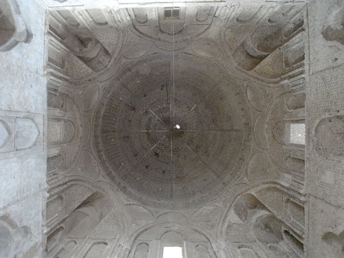 イスファハーンのスルタン・バフト・アガー・マドラサ(図14 1351/2年)では、伝統的な入口上部のドゥ・ミナールとともに、次世代に向けた変化として、墓建築にはドラムを用い内殻と外殻が大きく乖離した二重殻ドームが残る。この技法は、次の時代、特にトゥーラーン(トランスオクシアナ)や大ホラサーン(現在のイラン、アフガニスタン、トゥルクメニスタンにまたがる)を中心としたティムール朝建築で花開く。