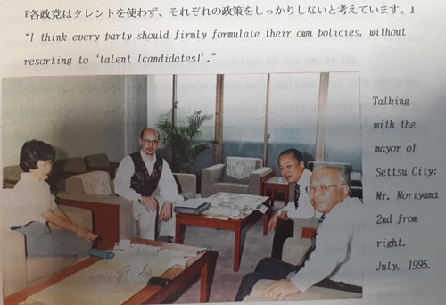森山さんは写真2に写っています。私は当時の日本の政治状況に関する質問リストを入念に準備し、Gさんがそれを日本語に翻訳するのを手伝ってくれました。もちろん、当時は日本語を話すことだけでなく、読むことにも自信がありませんでした。インタビューの際、森山市長の回答を録音し、Gさんがその内容を文字起こししてくれました。この日本語を使った経験は、私に大きな自信を与え、日本語学習を続ける意欲を高めました。
