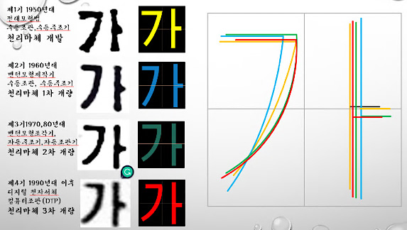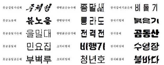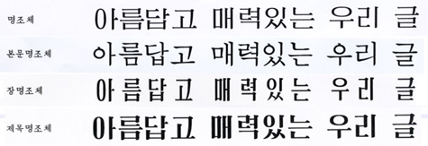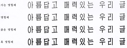 最後に、「結着体(Mae-chim-che)」は、中国の宋体の影響を受けて誕生した字体であり、韓国ではその存在すら知られていなかった書体である。しかし、1950年代から北朝鮮によって独自に開発され、活版印刷のさまざまな書籍のタイトルや見出しに頻繁に使用されている。その後、字面は正方形から長方形へと変化している。今日、北朝鮮で創作された結び体が電子書体として受け継がれていることは、朝鮮語の書体デザイン史において非常に重要な意義を持っている。