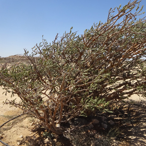 閑話休題、ダウカのワーディーにおり立って、石ころを踏んで進む。よく育った乳香樹は木陰で涼めそうなくらい立派なものである。カサカサ鳴っているのは何かと思えば、樹皮が古い壁紙のように剥離して、そよ風に揺られているのだった。この木に、熟練した職人が専用の道具でもって良い塩梅で傷をつけ、にじみ出てきた樹脂が、乳香である。桃栗三年、柿八年ではないが、乳香の木も採取に適した段階に成長するまで十年近くの歳月を要する。腰丈ばかりの若木は、なるほど、これを傷つけるわけにはゆくまいというくらい、かぼそい。
