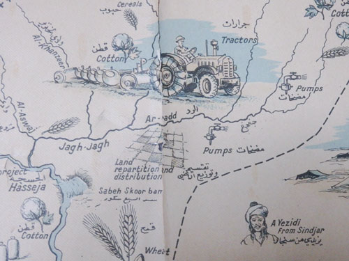 シリア東北部、ユーフラテス川とチグリス川の間に広がるメソポタミアの地をシリアの人々はジャズィーラ地方と呼ぶ。大河の間に浮かぶジャズィーラ(島)ということだ。私はダマスカスの旧市街で、この地方の中心都市ハサカ出身の兵士と部屋を借りて暮らしていたこともあり、1980年に彼が除隊すると、この知人が住むハサカを拠点としてこの高温乾燥の広大な大地をたびたび訪れることになった。ある時大家のおばさんが言った。「なんでもあっちの方ではサタンのことを悪く言うと石を投げつけられるというじゃないか。気をつけるんだよ」ヤズィード派のことだ。ヤズィード派は、サタンを崇敬する宗教という話を聞かされたことがあった。1950年代に作成されたと思われるシリア絵地図を見ると、ジャズィーラ地方のイラク側にヤズィード派の似顔絵が描かれていた。