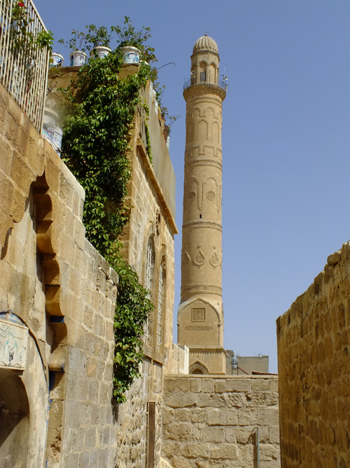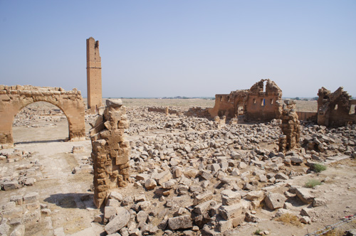 例外的ではあるが、トルコ南東部シリア国境に近いハランにはウマイヤ朝期から11世紀にかけての都市遺構が発掘され、大モスクに付属していた矩形の高い塔が残る(図2)。大シリアからジャズィーラ地方にかけて広まったキリスト教会堂の鐘楼を移動した形の高塔で、ウマイヤ朝期創建の大モスクのミナレットだったと言われる