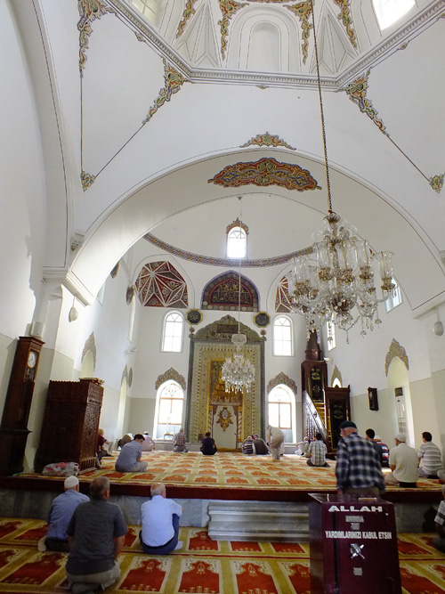 また、次世代を担うオスマン朝の初期の兆候として、一室だけで入口にアーケードをもつ単一ドーム式、大きなドームを2つキブラ方向に並べ両脇に側室をつけるT字式(図13)へと発展する。これらは、キリスト教会堂との関係を物語る。オスマン朝の傑作スレイマニエは、礼拝室のドーム構成からハギア・ソフィアの影響が大きいとされるが、オスマン朝のドームへの執着は14世紀以後の単一ドーム式、T字型式などにすでに現れ、エディルネのウチ・シュレフェリ・モスク(図14)が定型化される要素を含んだ直前の例となる。