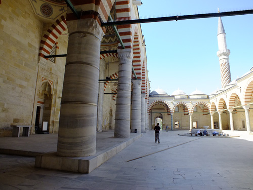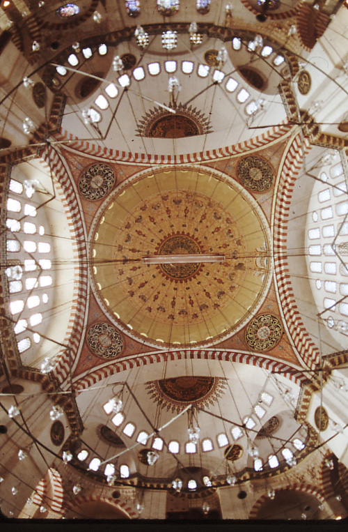 15世紀半ばから16世紀末までの150年間は、オスマン建築が最も壮麗化された時代(盛期オスマン建築)といえよう。エディルネのウチ・シュレフェリ・モスク(図14)で、その前史に言及したが、典型的スタイルはファティーフ・モスクから始まる。盛期オスマン建築における大モスクの典型は、大ドームに半ドームを接合させて大空間の礼拝室とし、中庭の代わりに回廊によって囲まれる前庭を使い、細く高い鉛筆型のミナレットを立てる。加えて、モスクを中心にマドラサや諸建築からなる複合建築(キュリッイェ)を整形なプランに配する。