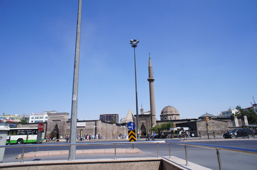 一方、12世紀後半以後、寄宿制高等教育機関としてのマドラサが好んで建てられる。ペルシアで再編されたイーワーン式(中庭の直交軸上に2つあるいは4つ)で中庭周囲に2階建ての小室を並べる形が大半で、モスクのような多様なプランは発達しない。しかしながら、アナトリアの冬の寒冷な気候のために中庭を正方形にしてそこにドームをかける例は、風土に合わせた改変といえよう。12世紀後半のヤギ・バサン・マドラサ(トカトとニクサール)は早い例ながら中庭をドームで覆う。その後も正方形中庭としてドームで覆い、周囲にイーワーンや居室を並べる(図15)。マドラサのペルシア由来を示すためか、入口ファサードには2基一対のミナレットが建てられることが多い(図16)。