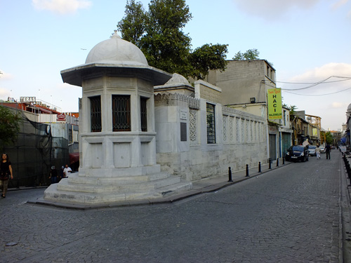 図20 シナンの墓(1587/8年)。彼はスレイマニエ・モスクの北側に自身で設計した廟に葬られた。1490年頃、カイセリ近くのキリスト教徒石工の息子として生まれる。異教徒として徴兵され、イスタンブルで軍事教育を受け、建築家・土木技術者としての素養を身につける。宮廷建築家として、パトロンはスルターンばかりではなく、側近としての宰相、あるいは皇妃、皇母、皇女などから依頼を受け活躍する。