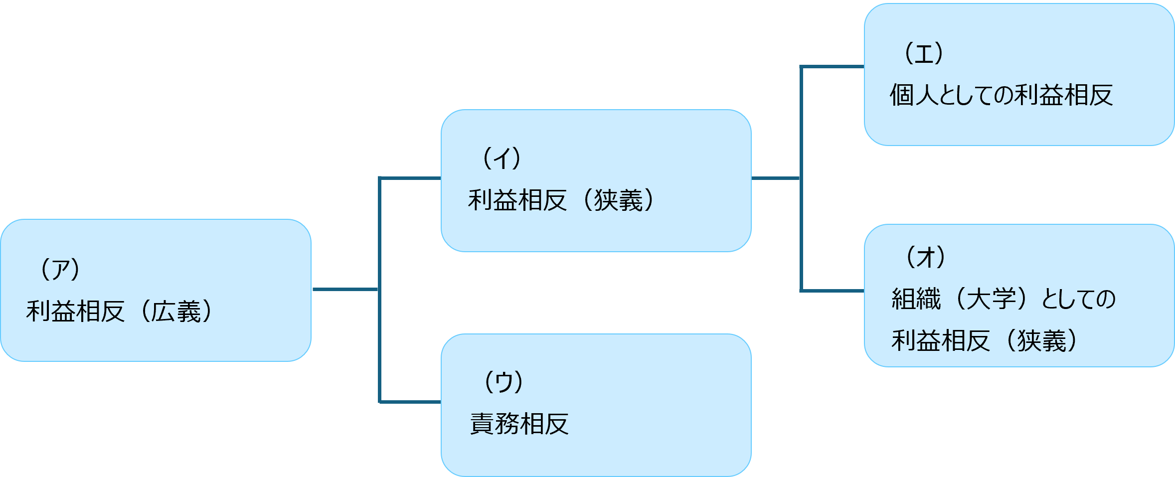 - 利益相反マネジメントにおいて重要なことは、本大学および教職員の社会的信用の確保であり、研究成果の活用や学生の産学官連携の研究プロジェクト参加においても、透明性があり公正な配慮が必要です。