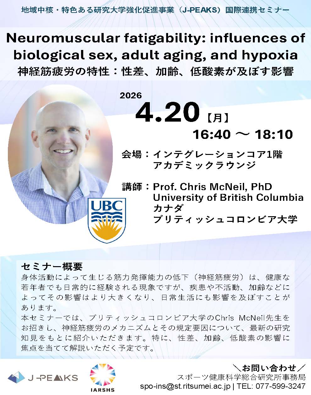 立命館大学×ブリティッシュコロンビア大学 J-PEAKS国際連携セミナー