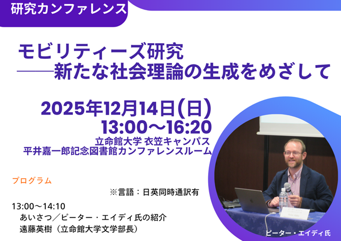 重点PJ【研究カンファレンス】 モビリティーズ研究――新たな社会理論の生成をめざして