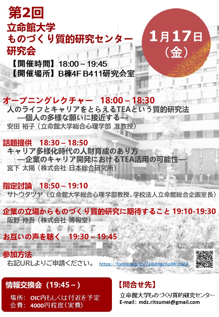 第17回 立命館大学 ものづくり質的研究センター研究会