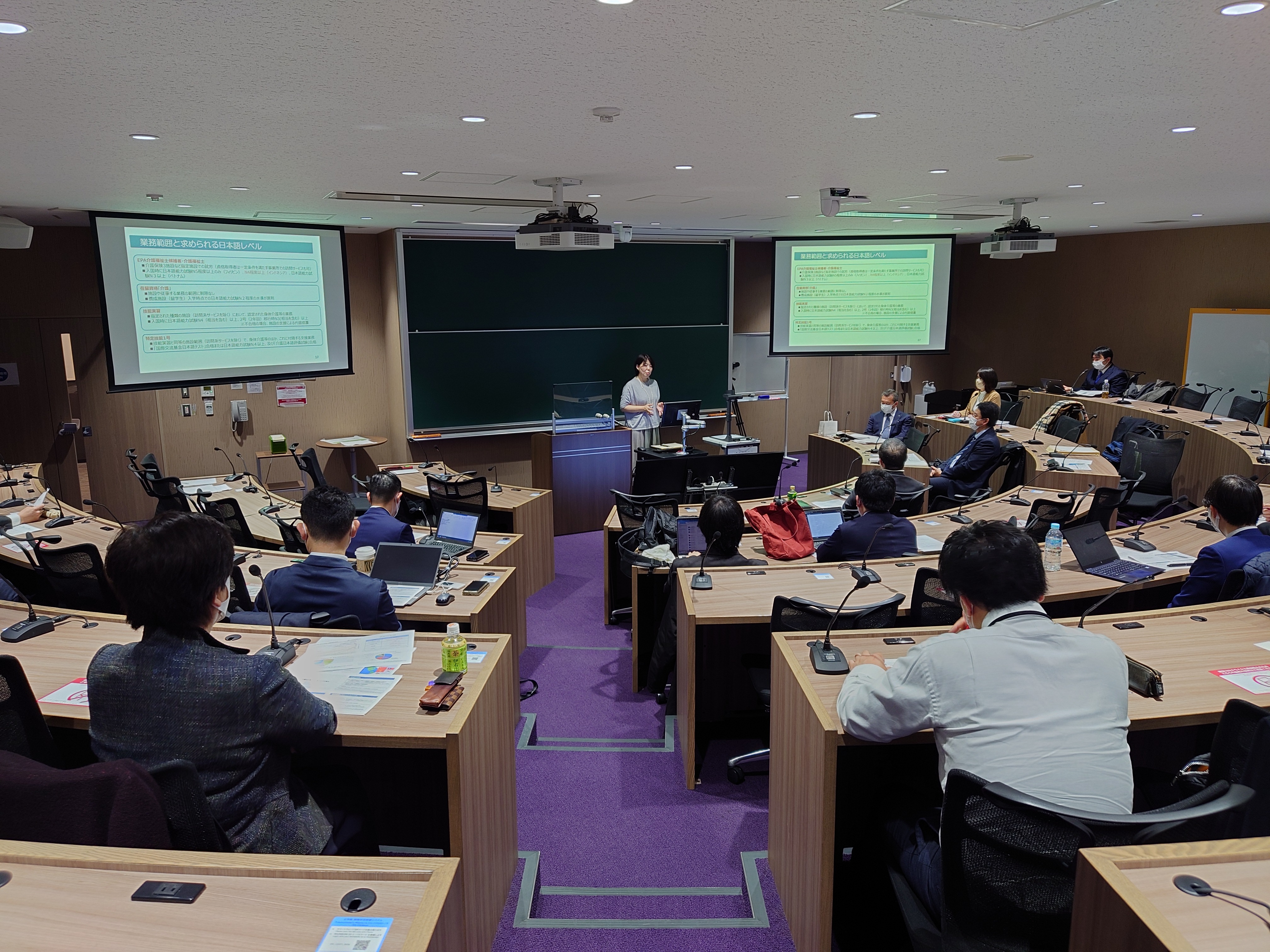 医療介護経営研究センター主催の「令和3年度介護分野生産性シンポジウム」を2021年12月4日(土)に、立命館大学大阪いばらきキャンパスにて開催しました。開催趣旨は次のとおりです。近年、介護分野を取り巻く環境が厳しくなる状況の中、他の製造業分野と同様に介護分野でも生産性向上に関する取り組みが進んできている。この生産性の取り組みが全国的に広がることにより、働く環境の整備やサービスの質が向上することが期待されているが、現状では十分に効果が出ているとは言い難い状況にある。その原因としては、介護分野などの人的なサービス分野は製造業と異なるという認識や介護分野の経営層における生産性への理解が十分進んでいないことに加え、先駆的に実践している事業所の取り組み事例が、地域事情や事業所規模等の違い、事業所固有の課題解決の改善を目指したものとの認識で、有効事例の適用に懐疑的な事業所が多くなっていることが理由として考えられる。そのため、本来の生産性とは何か、介護分野において生産性に取組む意義は何か、どの様に生産性を理解し、法人、事業所で生産性に自ら取り組むうえで考えなければいけないことは何かを本シンポジウムを通して未来志向で議論し、生産性に関して、本来すべての法人、事業所が取り組むべき必要性について明らかにする。