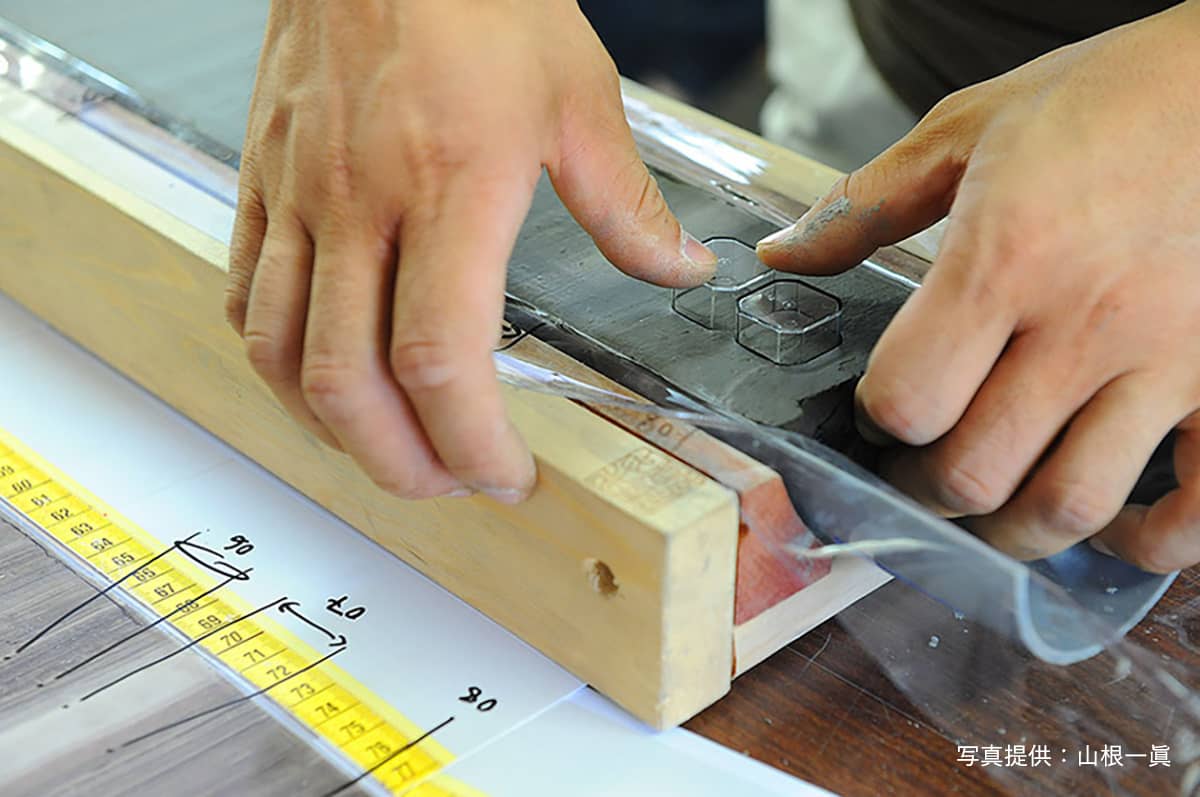 採取した年縞の分析・保存のために中川が独自に開発したオリジナル・ツール