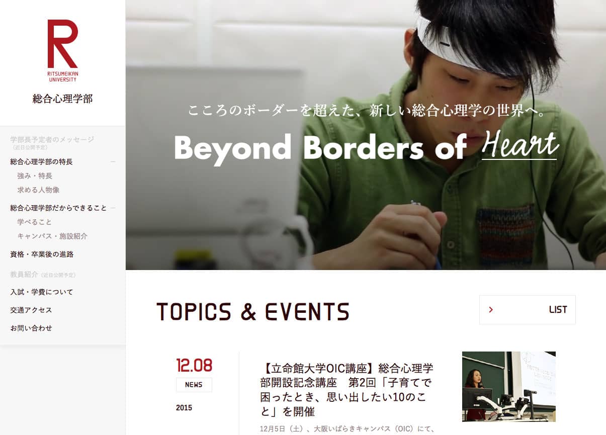 総合心理学部のWebサイト