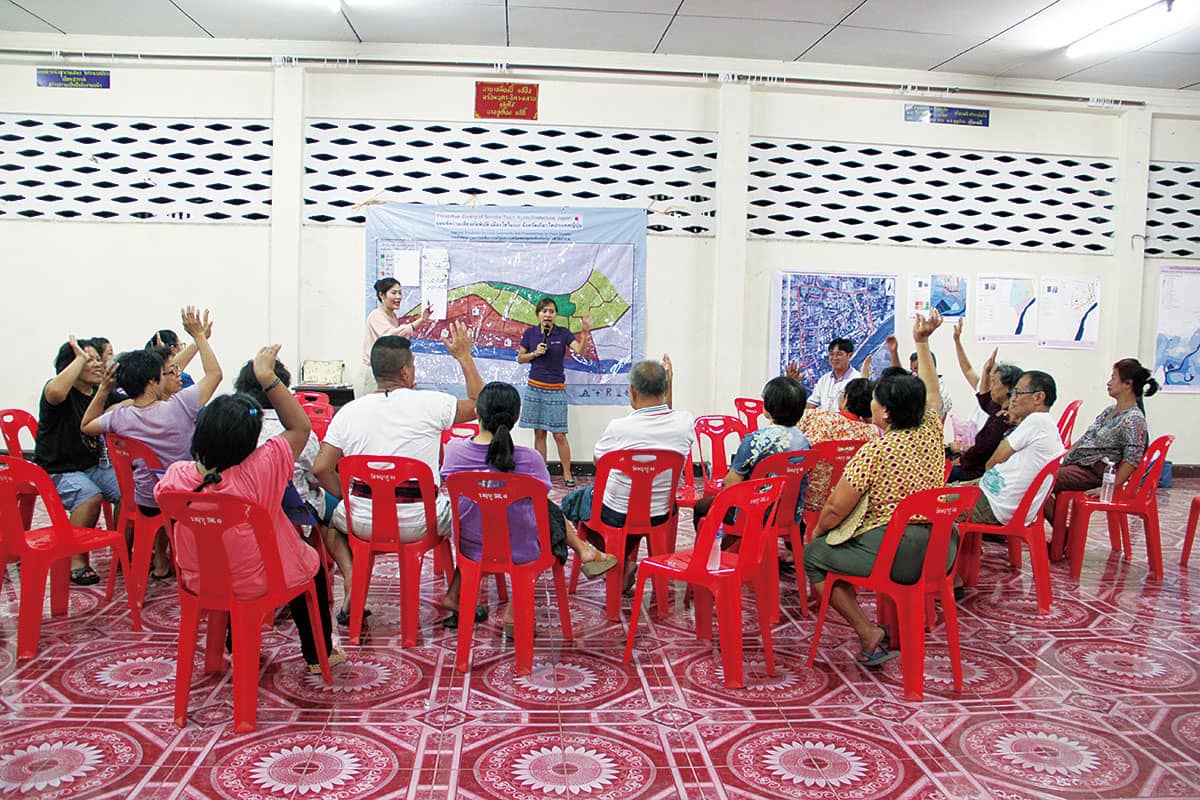 「防災対策を講じる際の最大の課題は、立場や利害の異なる複数の主体がいるにもかかわらず、現実には一つの方策しか選択できないところにあります。アユタヤ島でも、住民や商店主、行政それぞれが自分にとって良かれと思って取った行動が軋轢を生み、最悪の事態を招いてしまいました」と豊田は言う。とりわけ行政によるトップダウンによる意思決定は、住民の理解を得にくい。「だから地域コミュニティにおける防災には、『リスク・コミュニケーション』が欠かせません」と豊田。それは、コミュニケーションを通じて各主体がリスクを「共有」し、リスク対応について「合意」を形成すること。合意のもとでこそ、リスクを回避する対策も実行力を持つのだ。