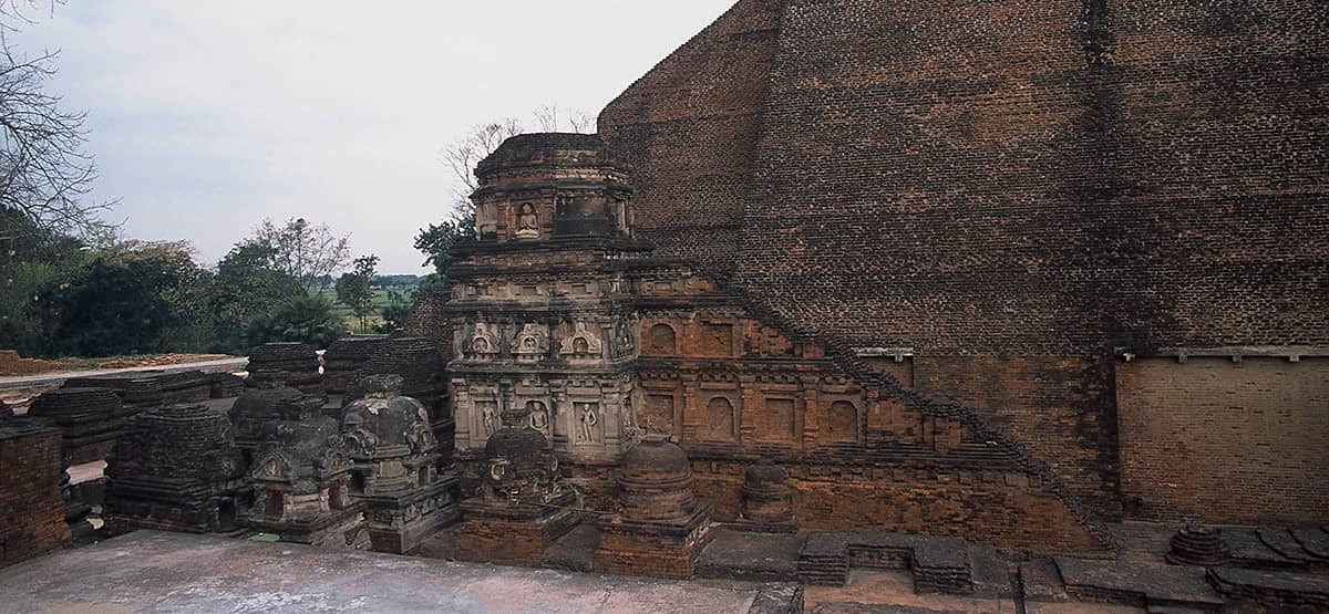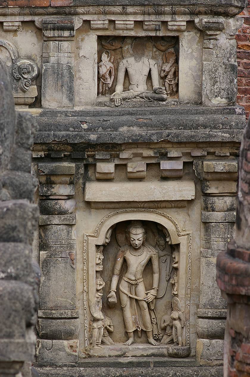 インド、ビハール州にある巨大仏教寺院遺跡。7世紀、玄奘が学んだのもこの寺院である。上の写真は遺跡南端にある煉瓦積建築の側面で、7世紀頃に制作された仏像が安置されている。玄奘も、これらの仏像を目にしていた可能性が極めて高い。