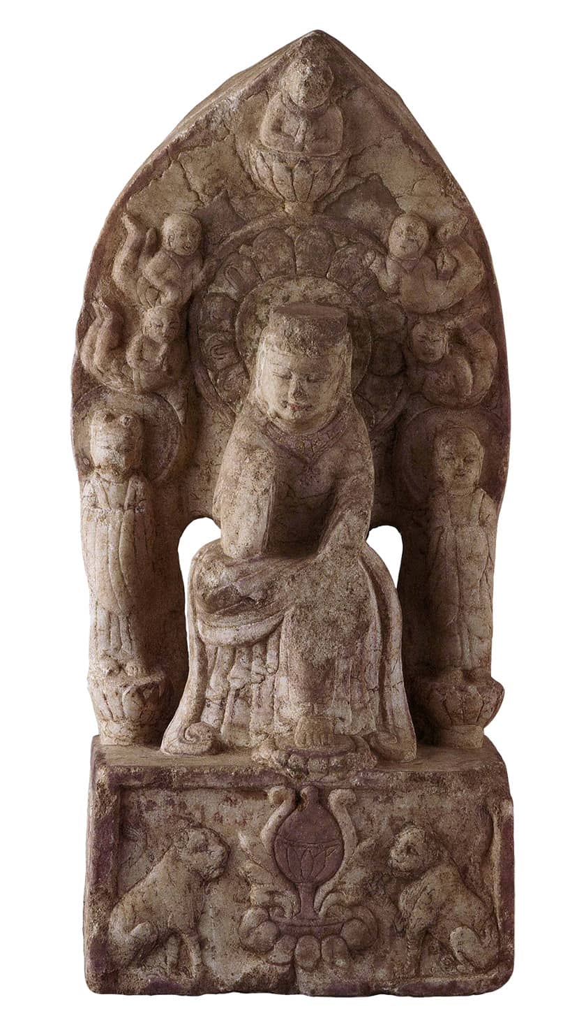 さらに西林は、鄴城遺跡から数多くの半跏思惟像が出土したことにも注目する。台座に腰かけて右脚を左ひざに乗せ、右手を頬に当てて思索にふけるこのポーズは、京都広隆寺の弥勒菩薩像をはじめとして、日本や朝鮮半島でもよく知られている。中国では、まず、釈迦の思惟の姿として、このポーズが伝えられ、北魏時代以降、東魏・北斉時代の仏像にも、同様のポーズが受け継がれる。その過程において、未来の仏を約束された弥勒菩薩にも、この姿が採用されたらしい。西林によれば、ポーズの源流をたどると、インドやガンダーラ地域に溯ることが可能であるが、中国では、北朝つまり、北魏や東魏・北斉といった北半分の地域で圧倒的に多くの作例が残るという。5~6世紀、中国は南北朝時代であったが、従来、日本の飛鳥時代に花開いた仏教美術の源流としては、百済や新羅といった朝鮮半島を経由して、中国の南朝側の仏教美術との関連が深いと考えられてきた。「半跏思惟像の造形展開を追うことで、朝鮮半島を介した、中国の北朝の仏教文化と、日本の仏教文化との関わりを、より積極的に考えることが出来るかも知れません。このように、鄴城遺跡の仏教美術は、従来の研究を大きく飛躍させる、様々な可能性を持っています」