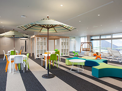 中庭と屋上庭園に囲まれた開放的な空間で、企業・団体、自治体、大学教職員・院生・学生など、様々な人々が出会い、意見を交わし、新たな知見を創出することを目指して設置されました。学外の方々との共同研究会やセミナーの開催に活用されています。