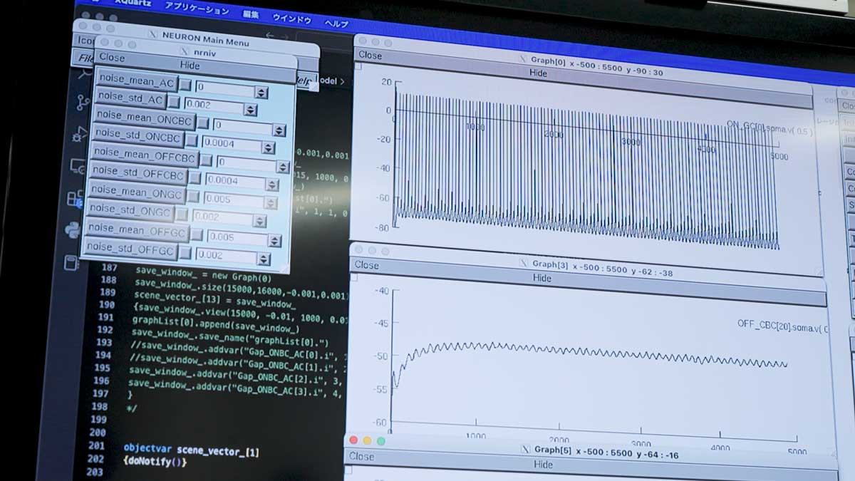 さらに3つめとして、それぞれの研究で得られた実測データを活用し、網膜情報処理機能を定量的に評価するための数理網膜回路モデルの構築に挑みます。再生網膜の機能が正常網膜と同等かを評価・検証するには、その設計図として網膜回路モデルが必要ですが、まだ世界的にも存在していません。数理モデルができれば、網膜が環境変化に適応するための因子の予測と検証も可能になると期待されます。