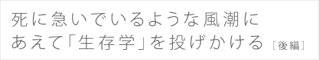 生きるのが難しい時には、技術を使えば少しは生きやすくなる。であるなら、使い勝手をできる限り良くした方がいい。そのためには何を解決すべきなのか。また、解決のためにどのような視点が必要なのかを当事者の意見(技法)を尊重しながら拾い上げていく。世界で起こっていることでも、拾われていないことはたくさんあります。そういったものを拾い上げて発信していく。これも「生存学」の使命なのです。