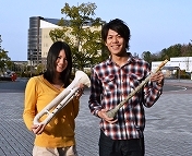 村上雅美さん(理工学部4回生)、平尾一樹さん(理工学研究科博士課程前期課程2回生)/第8回全国手づくり楽器アイデアコンテストで「会長賞(1位)」を受賞!