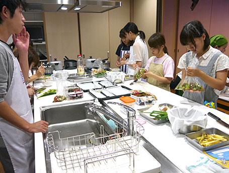 ロゴマークでは、Rは赤、Oは水色で、どちらも炎の色を表しています。火を扱うことは大人への第一歩。学生のみなさんが食を中心とした生活力を身につけ、大人として自立していってほしいという願いが込められています。