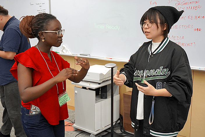 将来、国際的な宇宙開発プロジェクト及び探査系ミッションへの挑戦を可能にすべく、居住地の異なる多様な人材が、遠隔地であってもチームとして協調的に仕事を遂行できるようになるための能力開発プログラムです。国際的なチーム活動に不可欠なコミュニケーションスキルを修得するための座学と演習を実施します。宇宙と地上という遠隔環境で作業する宇宙飛行士のチーム行動能力として体系化された宇宙飛行資源管理(SFRM)の基礎知識を座学を中心として学びつつ、立命館アジア太平洋大学の国際学生も交えた演習を行い、最終的に海外大学の学生との演習を行うことで、国際的なチーム作業環境で通用するコミュニケーションスキル・チーム行動能力を高めることを目的としています。