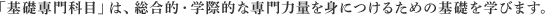 「基礎専門科目」は、総合的・学際的な専門力量を身につけるための基礎を学びます。