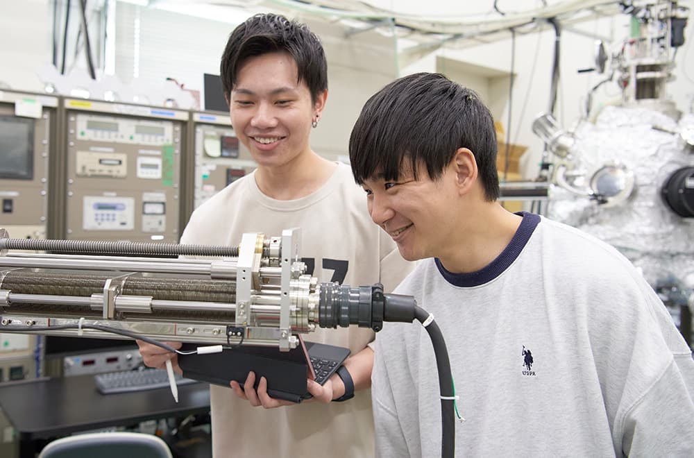 本学科では、1年次に基礎的な理工系科目を学び、2年次からは「先端電子デバイスコース」と「先端電子システムコース」のいずれかで専門性を高めていきます。これにより、学生一人ひとりが自分の興味や将来の進路に合わせて、より深い学びを実現できます。