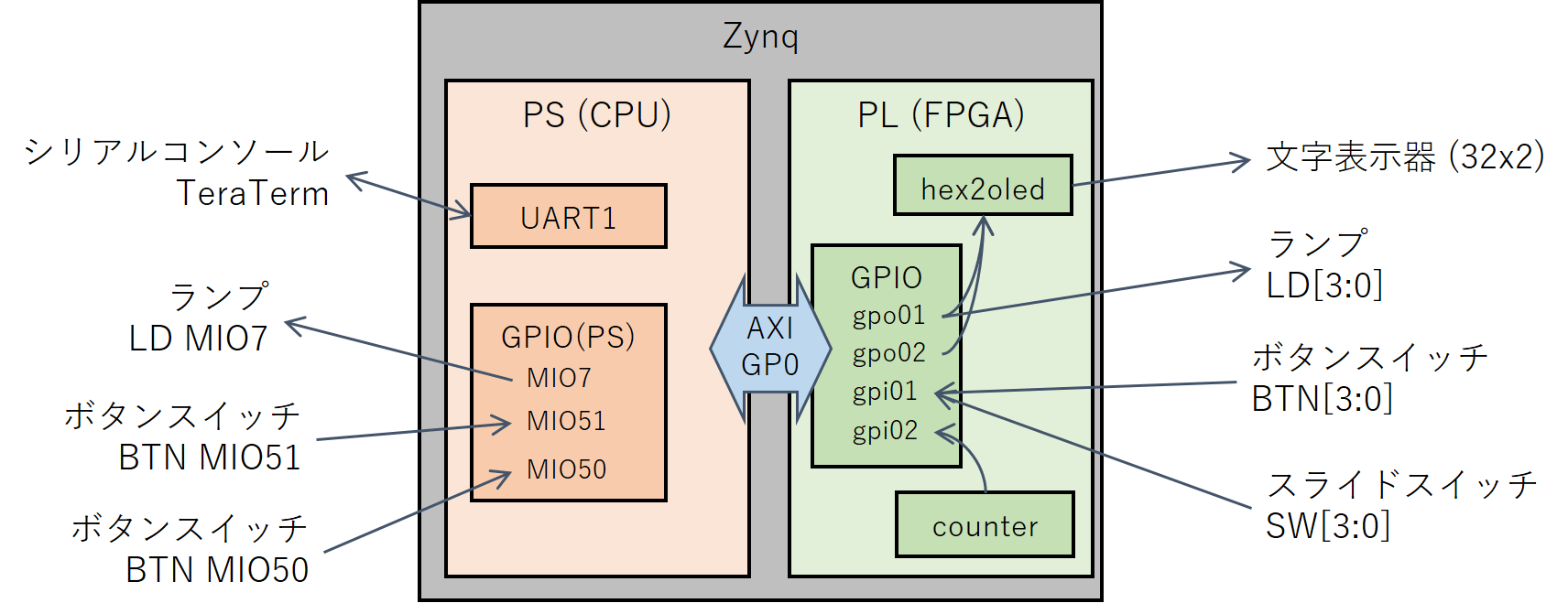 この演習では Zynq の Programmable Logic (PL) と Processing System (PS) を