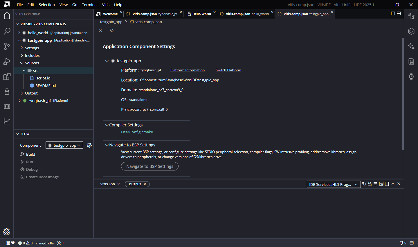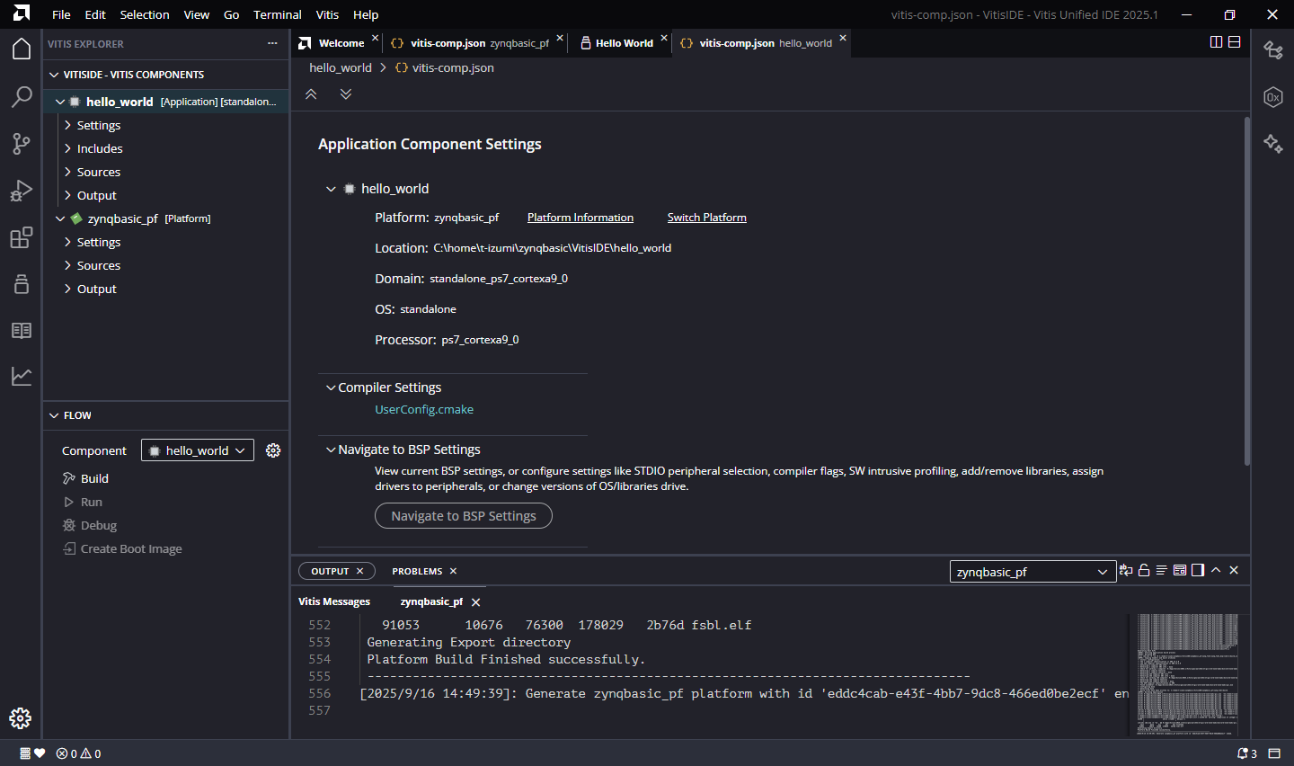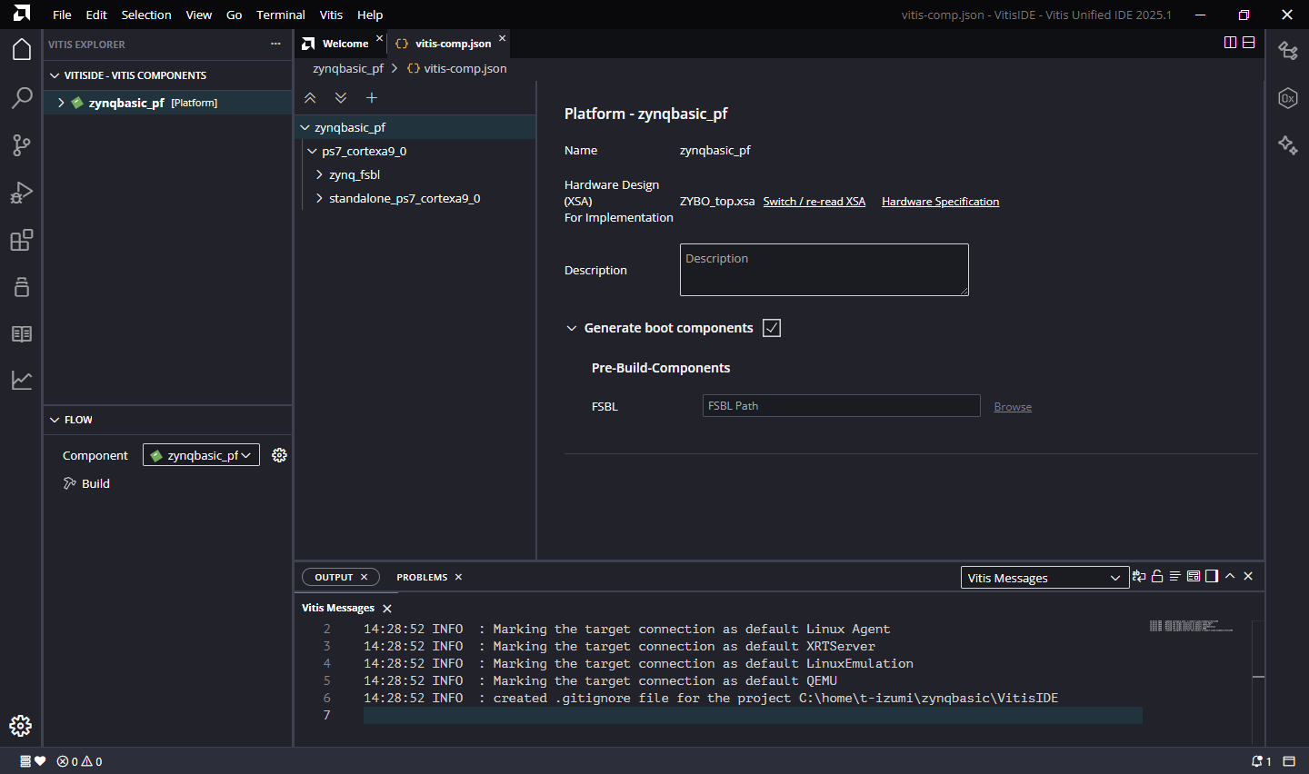 - 作業フォルダを設定する。例 C:/home/t-izumi/zynqbasicnv/VitisIDE