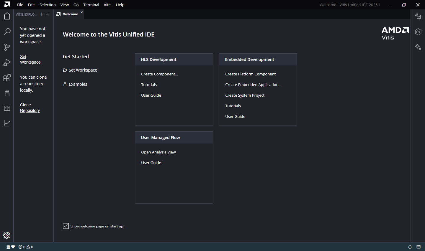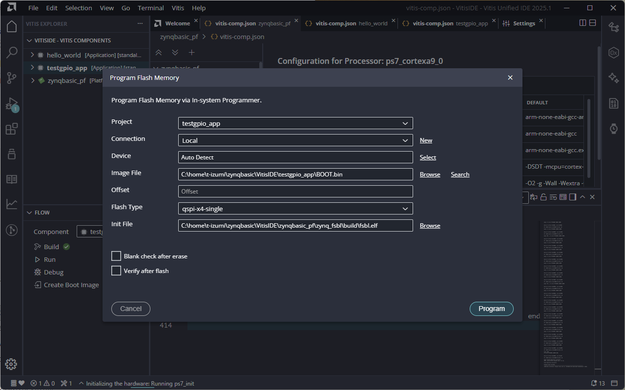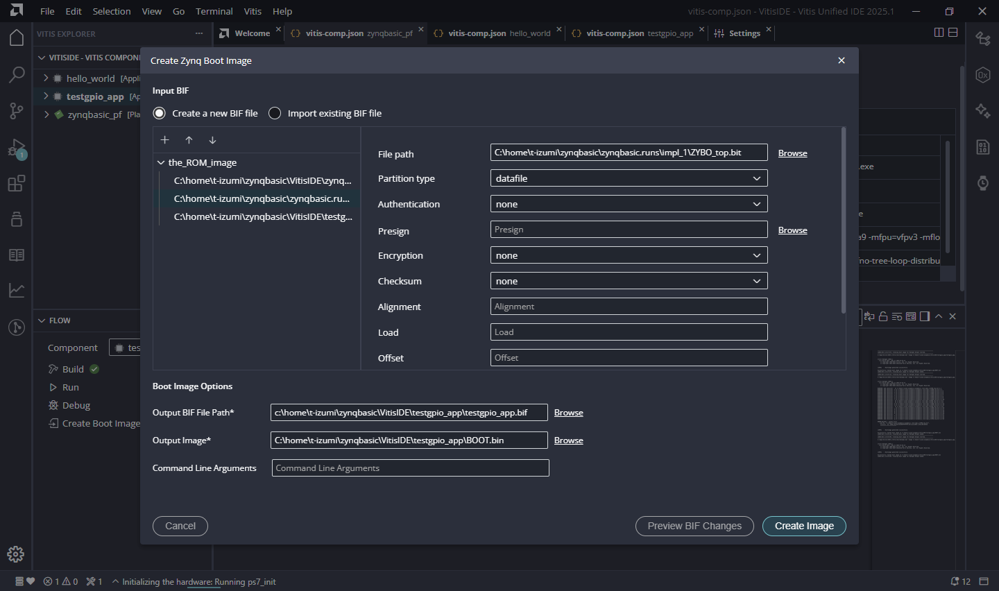 - 作業フォルダを設定する。例 C:/home/t-izumi/zynqbasicnv/VitisIDE