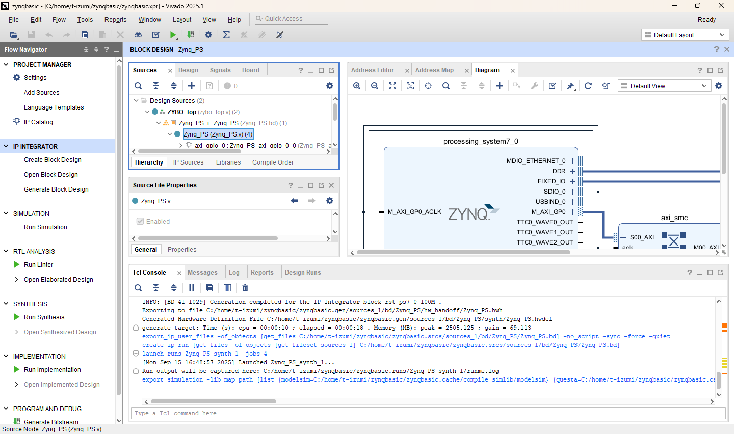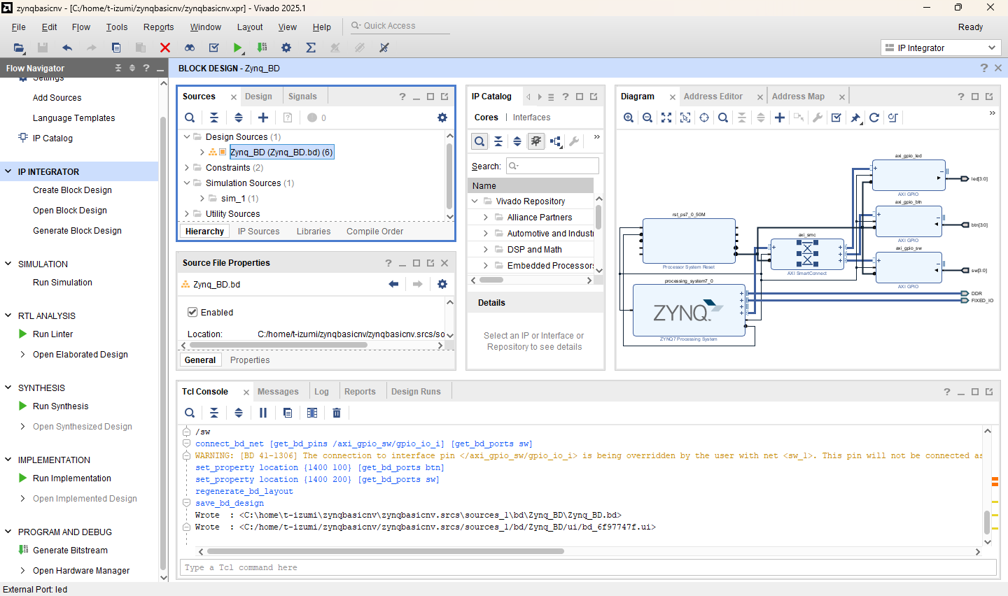 Xilinx Zynq による周辺回路とプログラムの連携 Vitis 2025.1版