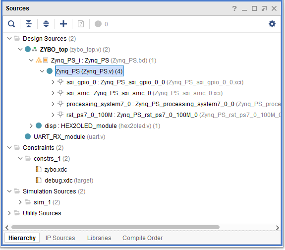 - Design Sources の中に登録したモジュールがあることを確認する。