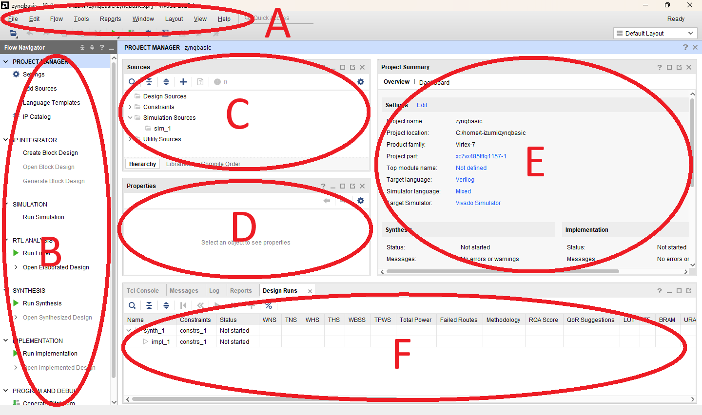 - Vivado を起動する。既存のプロジェクトが開いていたら閉じる。
