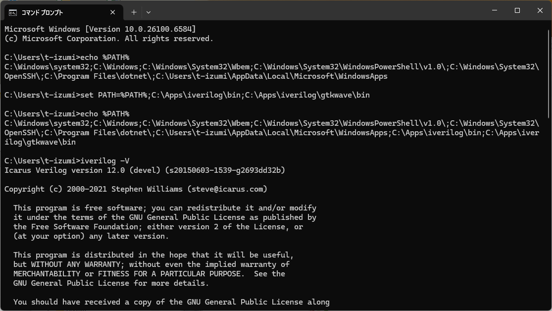 # コマンドパスに iverilog と gtkwave の場所を追加する。