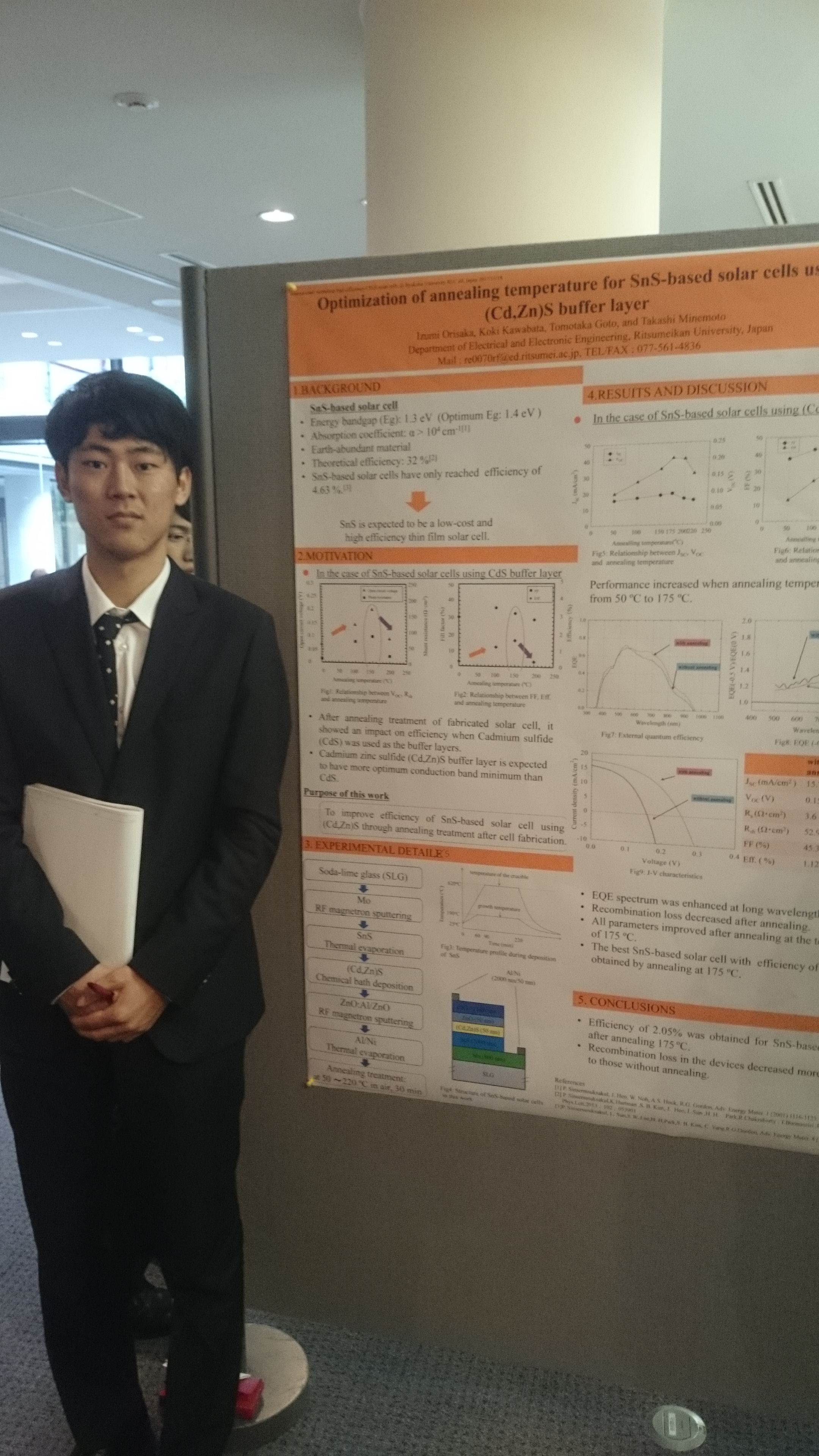 発表者 : 峯元准教授[招待講演] Jakapan(Ph.D) 松尾(M1) 新澤(B4) - 2014/11/28 International workshop for young researchers on thin film compound semiconductor solar cells