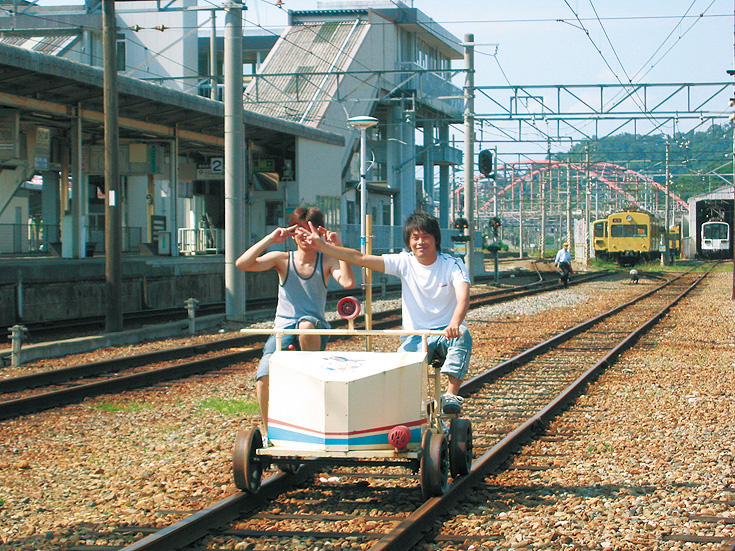 鉄道線路を利用した移動体GPS測位実験風景(近江鉄道・彦根駅にて)