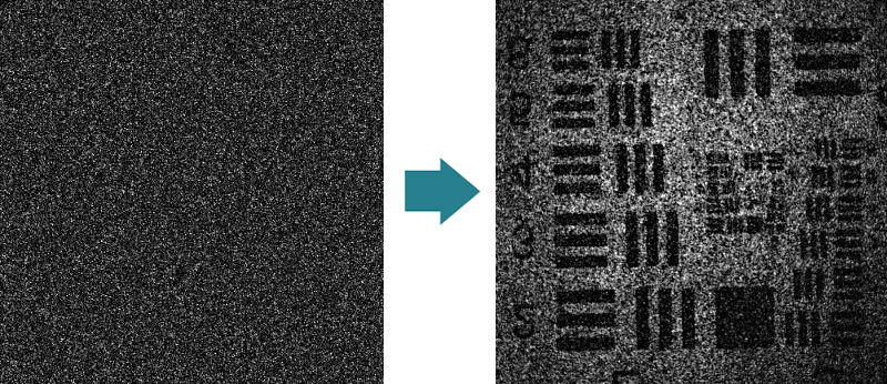 光の干渉により、すりガラスの向こう側の物体がみえる。
