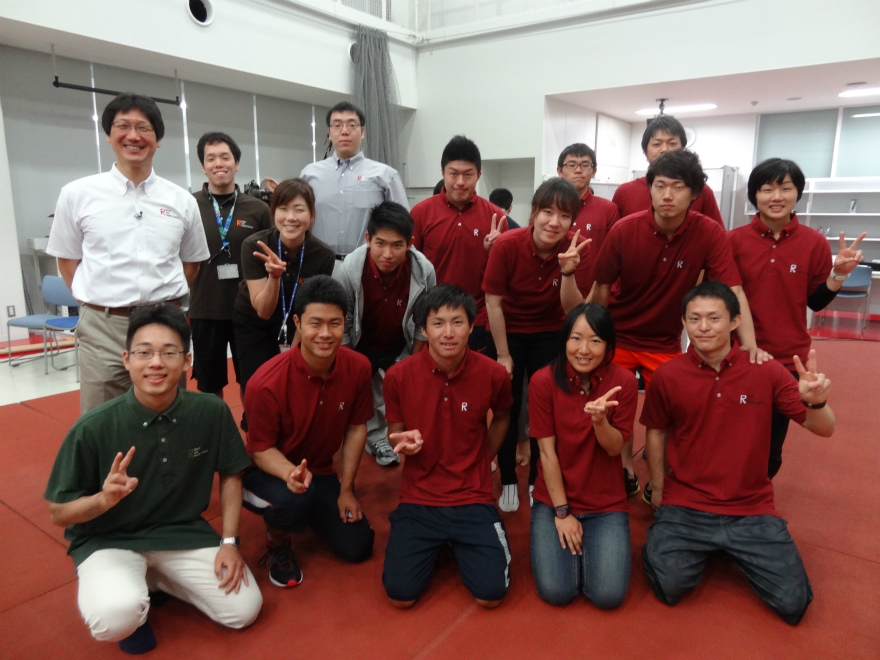 いずれしても、力学の観点と、人間の動き、制御の観点で議論しながら、ゼミ生、院生と実験を行いました。収録を意識して、「R」マーク入りのシャツで、よく考えながら動いてくれました。