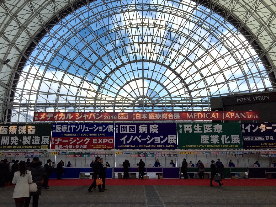Motoもいくつか企業と連携させてもらっていますが、今回、大阪のインテックス大阪にて開催された、「メディカルジャパン2016」で新たに自分自身の実施している研究内容をいろんな企業の前でMotoの研究内容に興味を持ってもらえるかを、セミナー形式で発表してきました。これは、医療関係の企業が集まる非常に大きいイベントで、病院イノベーション展、医療ITソリューション展、ナーシングEXPO、再生医療産業化展、インターフェックス大阪とそれぞれのエリアがあり、企業も1,000社以上が出展、国内・外の企業が来ていました。今年は3日間で2万6千人の人が入り、セミナー形式で発表した際の受講者数は1万人を超えます!Motoのセミナーにもかなり多くの人に来て頂き、その後も企業の方とDiscussionできました!