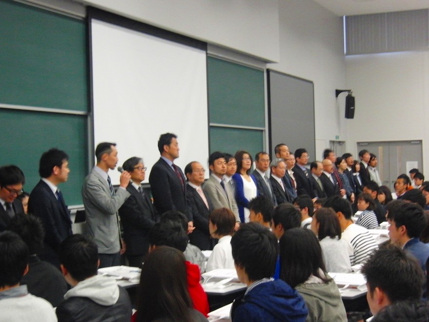 一方、背広姿で統一のネクタイをして、「体育会ラグビ-部です。私と汗を流しませんか~」と勧誘する姿も。